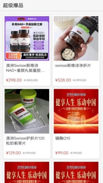 软件设置了多样化的商品分类入口,覆盖从健康养生、食品到生活用品、运动鞋乃至出行装备的全方位需求。超级爆品专区集中展示了优质的热销产品,便于用户快速了解市场热门商品趋势,满足不同购物场景下的需求。这种分类和专区设计既提升了用户体验,也提高了应用的转化率。